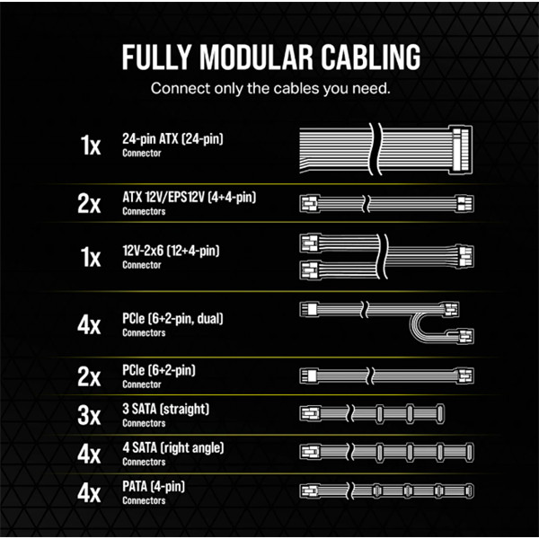 CORSAIR Tápegység Moduláris, RM1200e, 1200W, 14cm, ATX3.1, 80+ Gold