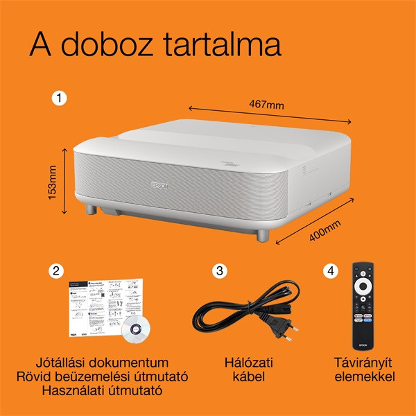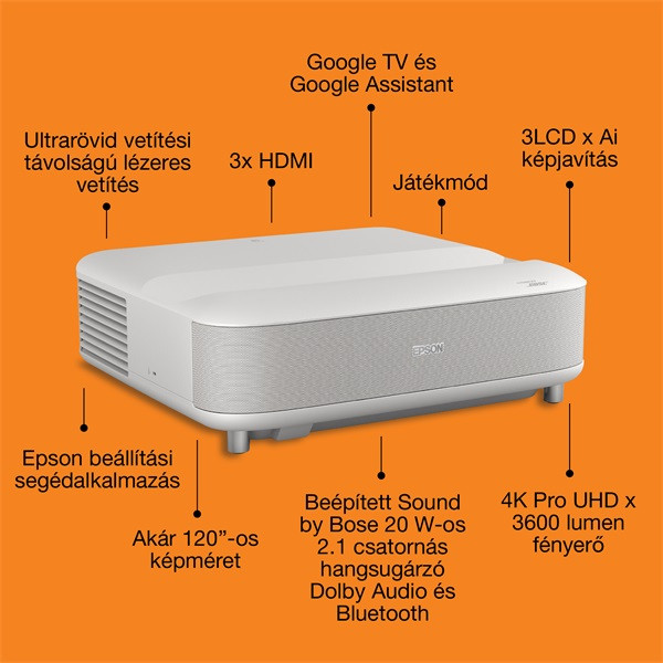 EPSON Projektor - Lifestudio Grand – EH-LS670W Gyémántfehér (3LCD, 4K Pro, 16:9, 3600 AL, 5 000 000:1, HDMI/USB/WiFi)