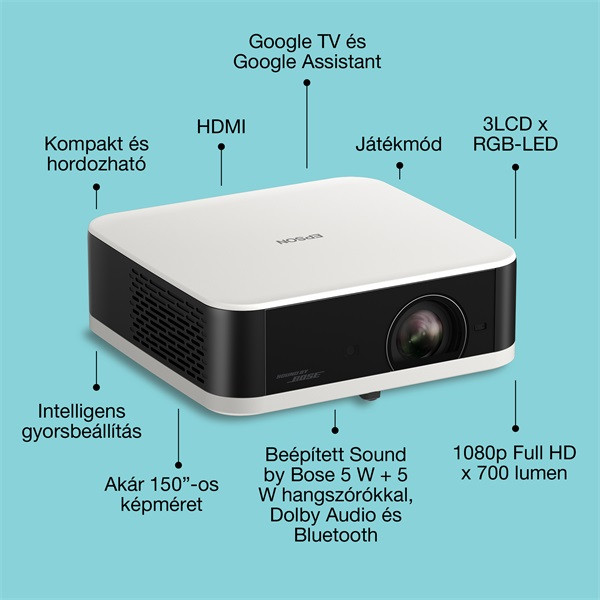 EPSON Projektor - Lifestudio Pop – EF-61W Gyémántfehér (3LCD, 1920x1080, 16:9, 700 AL, 5 000 000:1, HDMI/USB/WiFi)